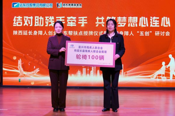 同时,宜兴市残疾人联合会向延长县残疾人联合会捐赠100辆轮椅,以实际行动传递关爱。