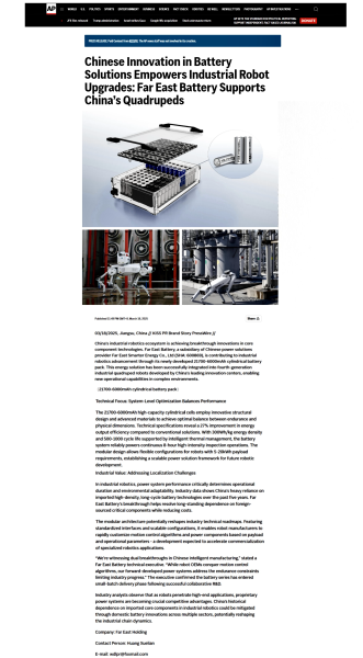 美联社:远东电池助力四足机器人发展